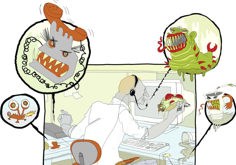 Itsy-bitsy bacteria rule our livesA new book by a California medical ecologist on the amazing world of microbes has been translated into Hebrew for Israelis.Germs at the workplace(photo credit: TNS)