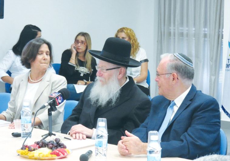 HEALTH MINISTER Ya’acov Litzman is flanked by Prof. Jonathan Halevy and Dr. Osnat Luxenburg at a meeting of the ‘health basket committee’ last month.(photo credit: JUDY SIEGEL-ITZKOVICH)ByJUDY SIEGEL-ITZKOVICH