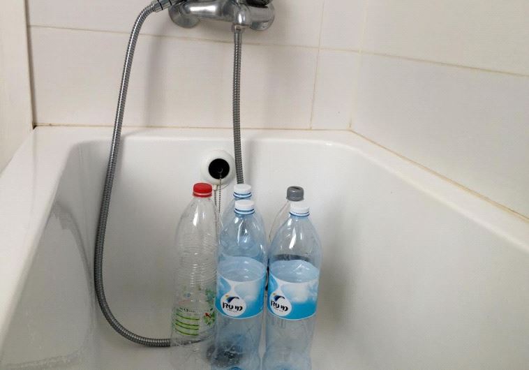 Rehovot residents filled up old bottles with water in preparation for water shut off. (photo credit: SHARON UDASIN)BySHARON UDASINUpdated: