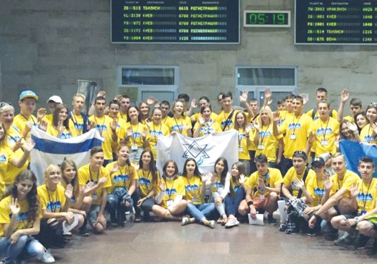 TEENS FROM Ukraine pose for a group photo before their departure from Dnipropetrovsk to participate in the Na’aleh high school program in Israel.(photo credit: JEWISH AGENCY)ByTAMARA ZIEVE