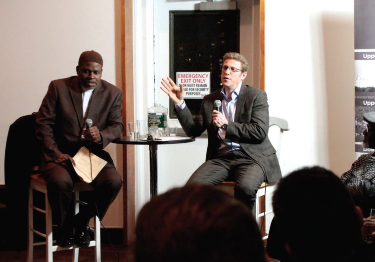 RABBI MARK WILDES and Imam Benjamin Bilal (left) give a joint lecture at an interfaith Manhattan Jewish Experience gathering in New York(photo credit: Courtesy)ByDANIELLE ZIRI