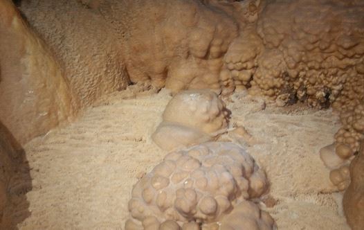"Most scientists believe that the color of speleothems is determined by the mineral content. Pure calcite is white and almost colorless. Iron and other minerals, as well as acids from surface vegetation, combine with calcite crystals to add shades of red, orange and black to the color of speleothems. Others believe that humic and fulvic acids in the soil may also contribute to speleothem coloration," according to the National Park Service.
