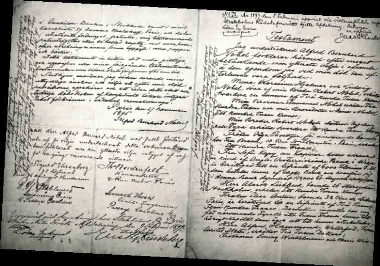Quite the legacy: The will of Alfred Nobel from 1895, which bequeathed the bulk of his fortune to the Nobel Prizes(photo credit: Wikimedia Commons)ByTIRTZA JOTKOWITZRead More