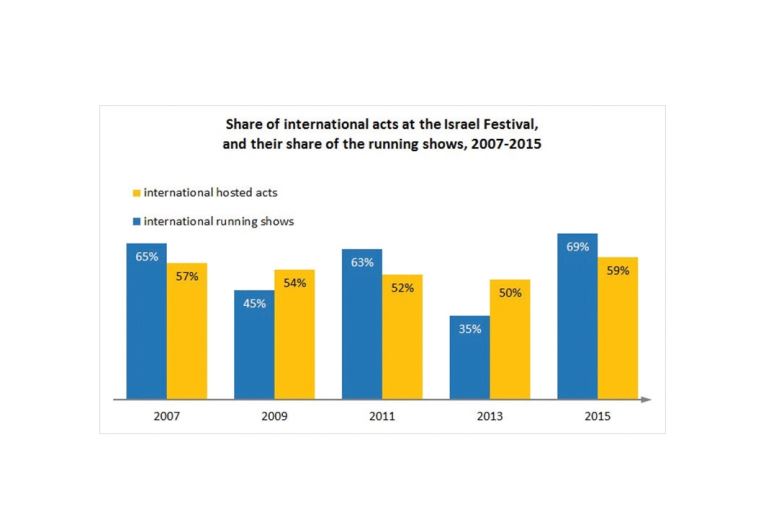 Share of International acts at the Israel Festival, and their share of the running shows, 2007-2015(photo credit: JERUSALEM INSTITUTE FOR ISRAEL STUDIES)ByRUTH ABRAHAMUpdated: Read More