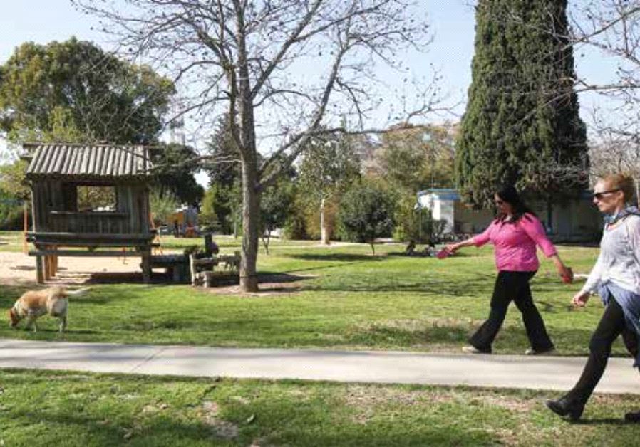 Nahal Oz resident Oshrit Sabag walks her dog in the Kibbutz earlier this month.(photo credit: MARC ISRAEL SELLEM/THE JERUSALEM POST)ByNOA AMOUYALUpdated:
