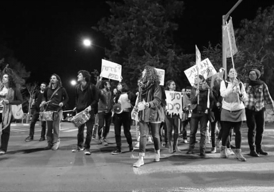 Activists from Free Jerusalem protest in front of Jerusalem Mayor Nir Barkat’s home Tuesday night. (photo credit: AMIR PAVILION)ByDANIEL K. EISENBUDUpdated: