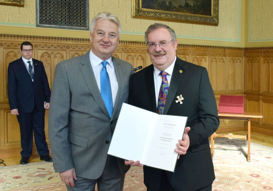 Hungary bestows state honor to Bar-Ilan University PresidentBar-Ilan University President Rabbi Prof. Daniel Hershkowitz with Deputy Prime Minister of Hungary Zsolt Semjén. (photo credit: MIKLÓS VÁLI)