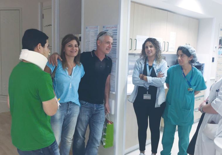 SHAHAR RODITI (left) prepares to leave Hadassah University Medical Center on Jerusalem’s Mount Scopus