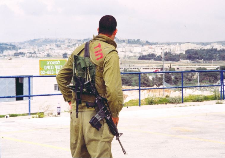A soldier on patrol looks toward Ramallah in 2001(photo credit: BRIAN HENDLER)Updated:
