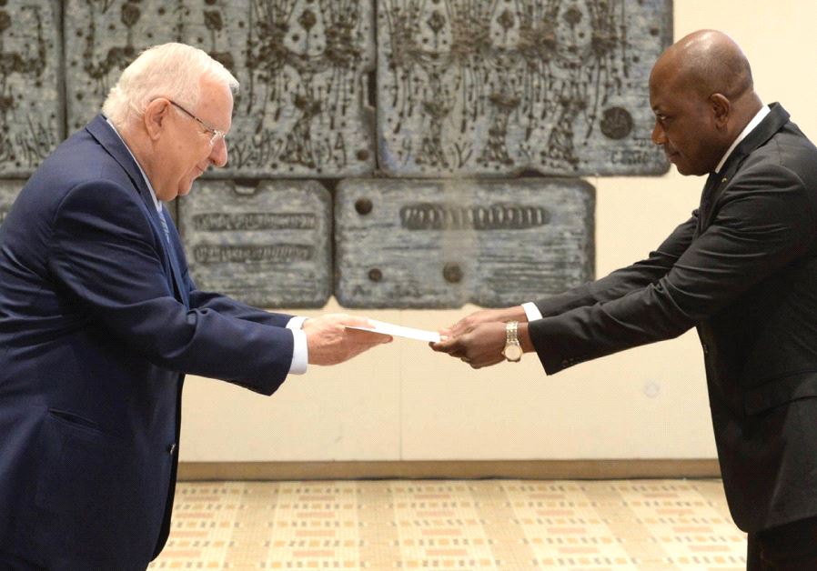 CALIXTE BATOSSIE MADJOULBA of Togo presents his credentials to President Reuven Rivlin at the President’s Residence in the capital yesterday(photo credit: Mark Neiman/GPO)ByGREER FAY CASHMAN
