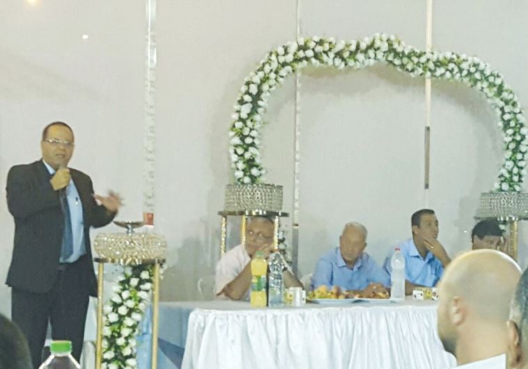 Deputy Regional Cooperation Minister Ayoub Kara addresses attendees at an event held for Arab supporters of the Likud yesterday in Kalansuwa(photo credit: COURTESY OFFICE OF THE DEPUTY REGIONAL COOPERATION MINISTER)ByGIL HOFFMAN