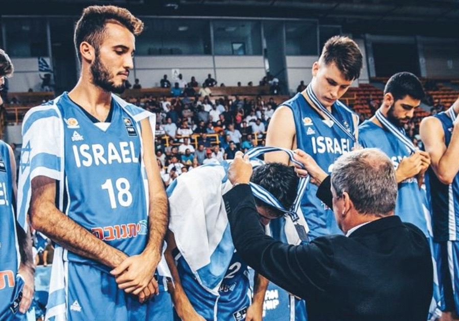 Israel’s players couldn’t hide their disappointment when receiving their silver medals at the under-20 European Championship in Crete, Greece.(photo credit: FIBA EUROPE WEBSITE)ByALLON SINAI