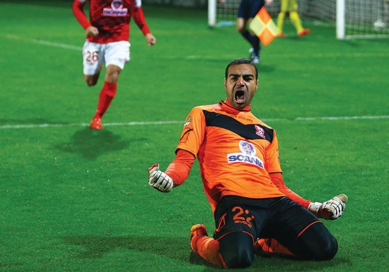Bnei Sakhnin goalkeeper Mahmud Kandil celebrates during his team’s 5-4 shootout win over Ness Ziona last night in the State Cup round of 16.(photo credit: UDI ZITIAT)ByALLON SINAIUpdated: