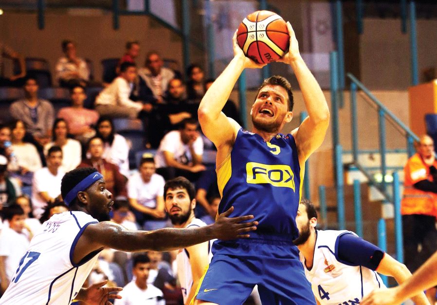 Maccabi Tel Aviv guard Gal Mekel (shooting) scored a team-high 14 points in last night’ 84-65 win over Maccabi Kiryat Gat, a victory that propelled the yellow-and-blue back atop the BSL standings(photo credit: UDI ZITIAT)ByALLON SINAI
