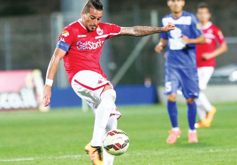Hapoel Beersheba midfielder Maor Buzaglo attempts a shot(photo credit: DANNY MARON)ByALLON SINAI