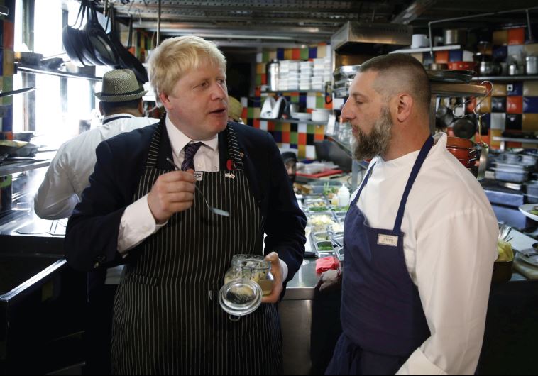 Former London mayor and Brexit champion Boris Johnson stands beside chef Assaf Granit, during a visit to the Machneyuda restaurant in Jerusalem in November(photo credit: REUTERS)BySHLOMO MAITALRead More