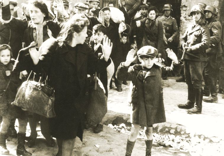 Jews forced out of bunkers by SS police during the Warsaw Ghetto uprising in 1943(photo credit: Wikimedia Commons)