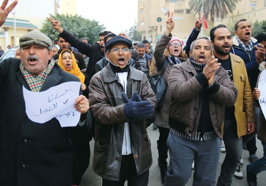 Unemployed protesters shout slogans during a demonstration demanding the government provide them with job opportunities, as Tunisia marks the sixth anniversary of the country’s 2011 revolution, in Sidi Bouzid, Tunisia, this month(photo credit: REUTERS)ByCOMPILEDTHE MEDIA LINERead More