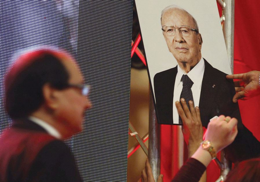 Hot off the Arab press 485619What citizens of other countries are reading about the Middle East.A man raises a picture of Tunisian President Beji Caid Essebsi, leader of the Nidaa Tounes party, January 2016(photo credit: REUTERS)
