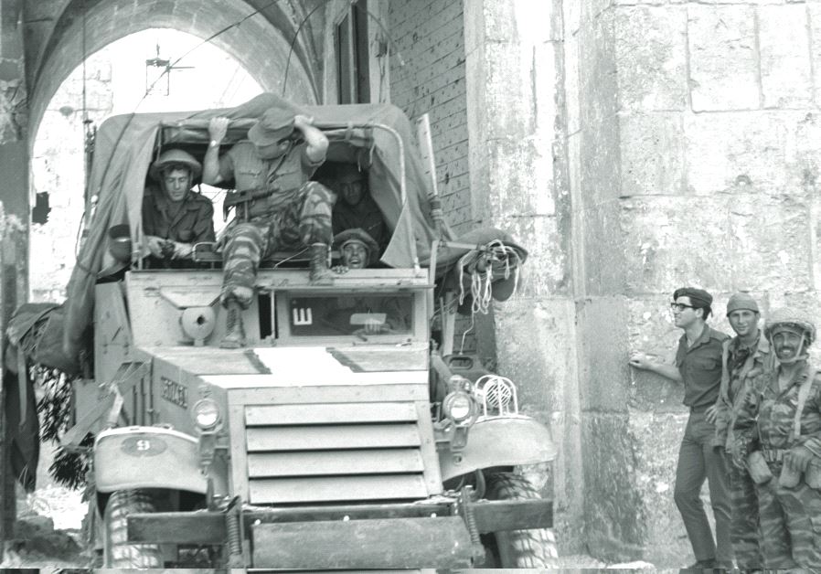 An IDF armored car passes through the Lions’ Gate in the Old City of Jerusalem on June 7, 1967(photo credit: ILAN BRUNER/GPO)