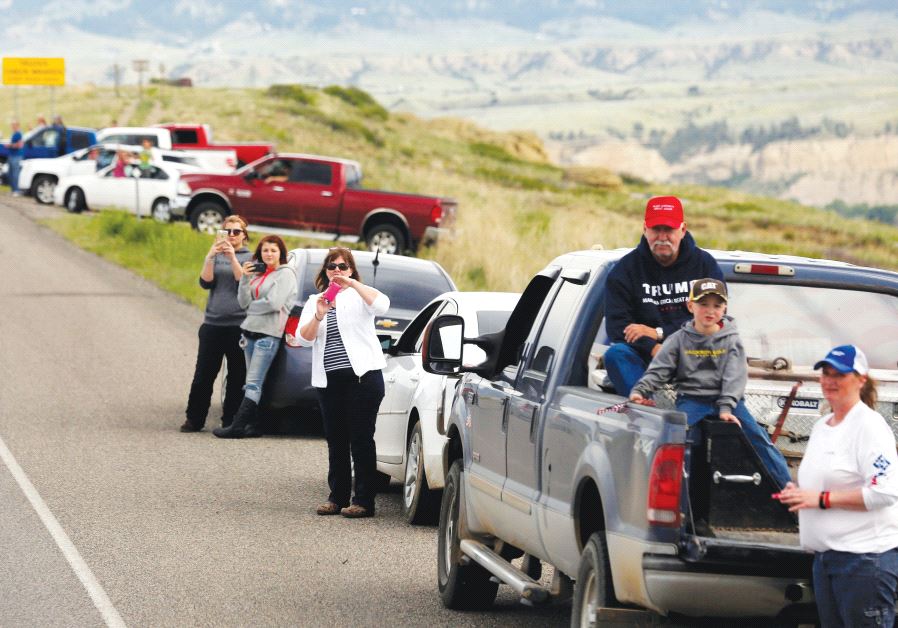 People watch along a highway in Billings, Montana, to catch a glimpse of then presidential candidate Donald Trump passing by on his way to a rally last year(photo credit: REUTERS)ByDANIELLE ZIRIUpdated: