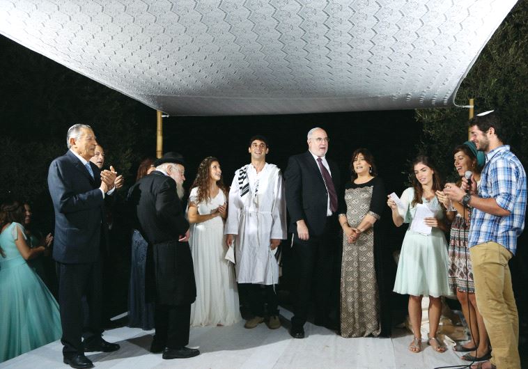 Aviva Lipsitz, sister of the bride, served as master of ceremonies at the wedding of her sister Ilana. Rabbi Adin Steinsaltz is seen on the left(photo credit: Courtesy)ByALAN ROSENBAUMRead More