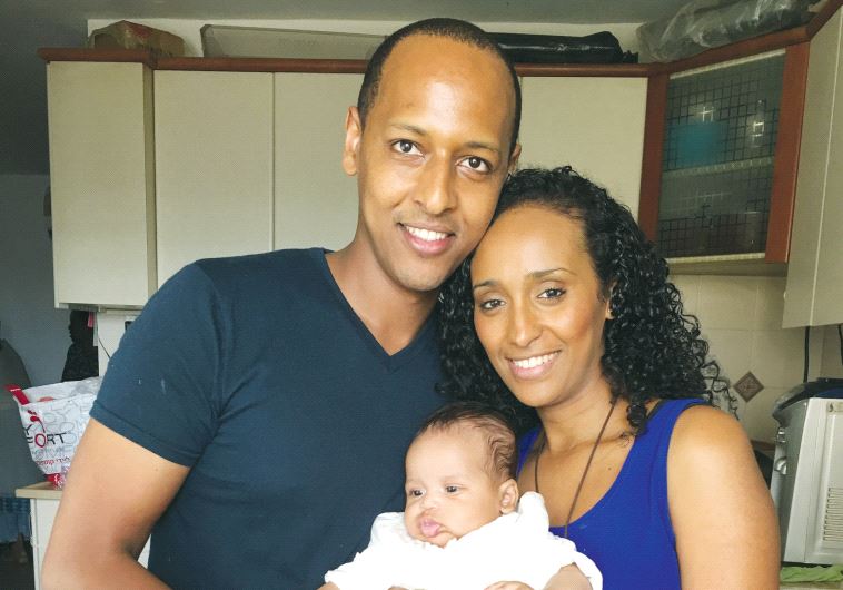 Shlomo Mehari with his wife and child, will travel to the US on a Fulbright scholarship and work as a researcher under Nobel laureate Prof. Shuji Nakamura(photo credit: Courtesy)ByRHONA BURNSUpdated: