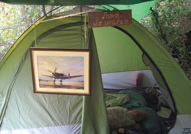 A sign reading ‘My Intimate Tent’ hangs above Oren Cahanovitc’s offbeat residence(photo credit: OREN CAHANOVITC)