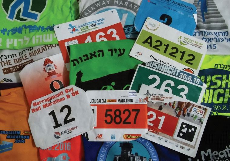Running with a minyanThe two kinds of runners in the world are those who run alone and those who prefer running with a group.Tokens from recent marathons(photo credit: AMIR AFSAI)