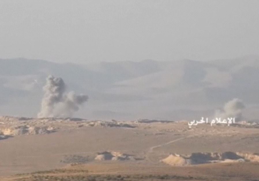 A still image taken on July 21, 2017 from an undated footage by Hezbollah Military handout shows smoke rising at an unidentified location at the Syrian-Lebanese frontier. (photo credit: REUTERS)ByREUTERS