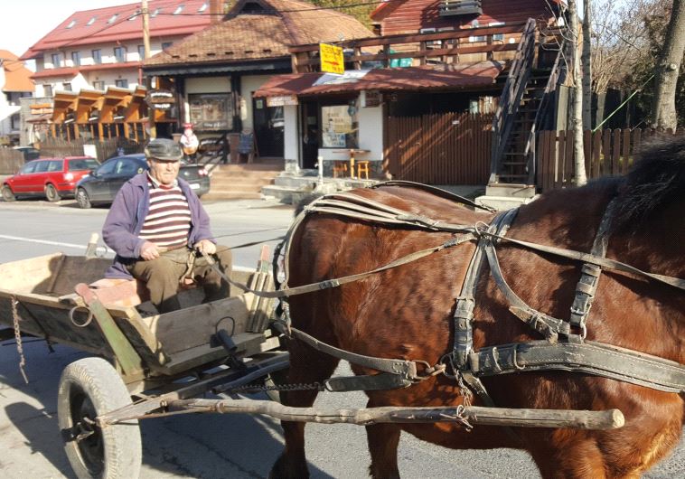 Home away from home in RomaniaRomania pulls out all the stops to welcome Israelis.A horse-drawn cart in Bran, Romania (photo credit: BEN FISHER)