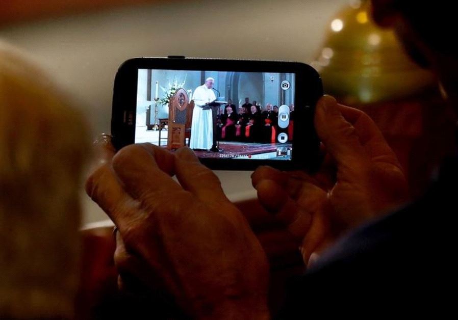 A member of the audience records Pope Francis as he speaks at St. Patrick's Catholic Church in Washington, September 24, 2015(photo credit: REUTERS)BySUZANNE STAMBOULIEH