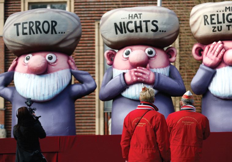 THIS FLOAT at a German parade has the words ‘Terror has nothing to do with religion’ written on three mullahs (monkeys). ((photo credit: REUTERS)ByMELANIE PHILLIPS